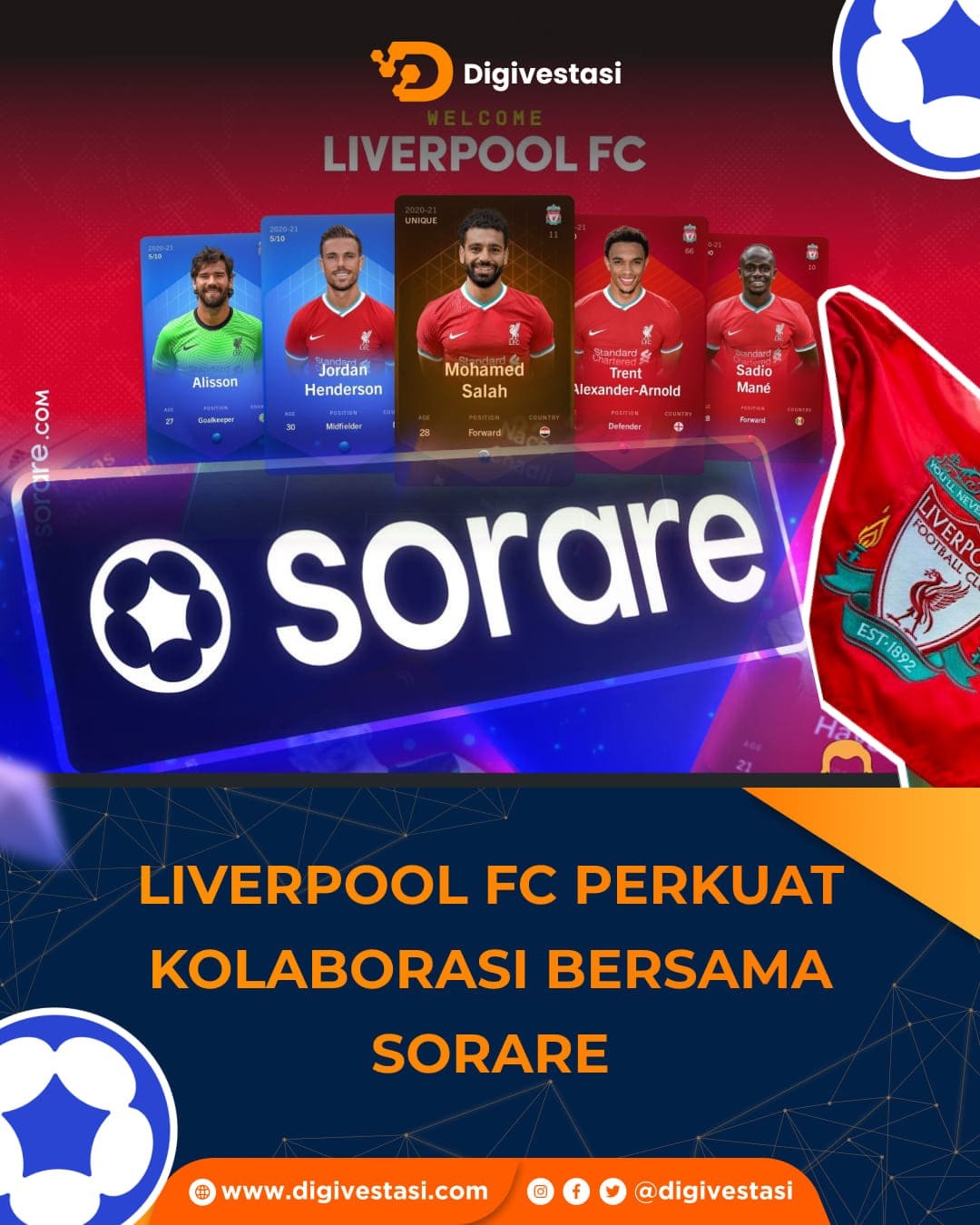 Klub sepak bola Inggris ini mengawali kolaborasi dengan Sorare pada tahun 2021 lalu. Menurut rincian yang dibagikan oleh Liverpool FC dimana para pemain klub akan terus tersedia sebagai kartu digital dalam permainan fantasi di Sorare.
